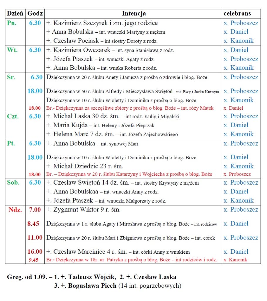 1. Dziś Msze św. w zwyczajnym czasie. – po prymarii zmiana tajemnic różańcowych – program…